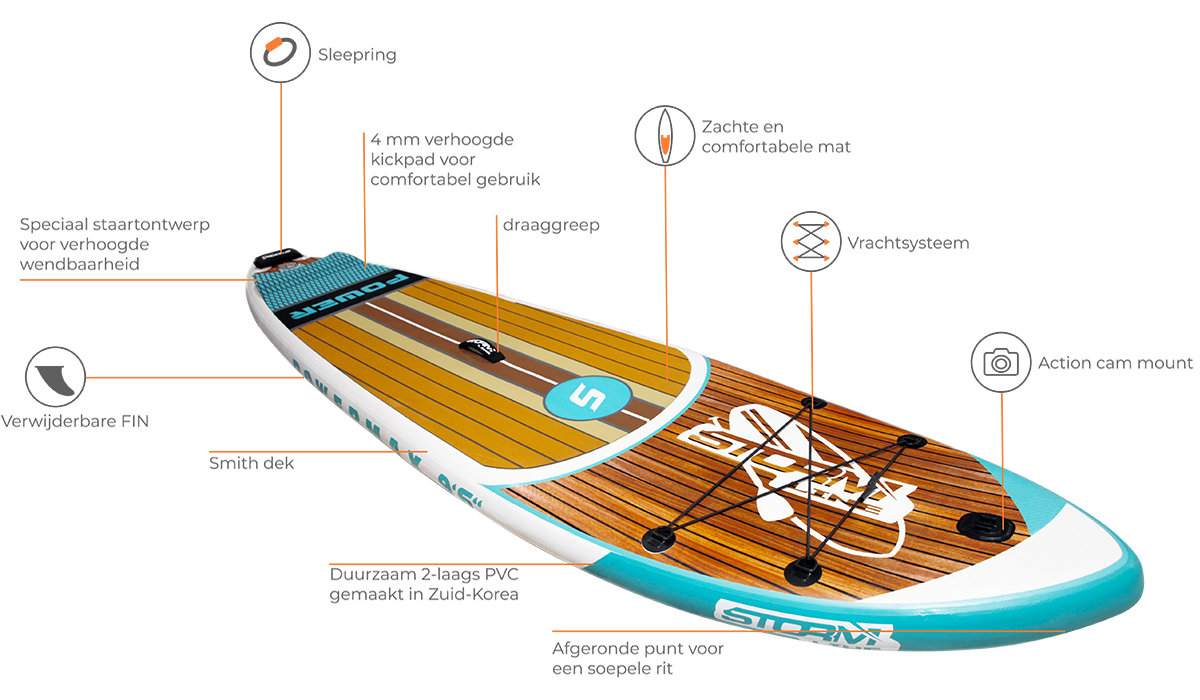 De Powermax 9.6 is geschikt voor surfen en heerlijke ritjes op het water. Veelzijdig, stijf en duurzaam; met dit board zal je in alle weersomstandigheden – kalme dagen of golvend water- blijven drijven.