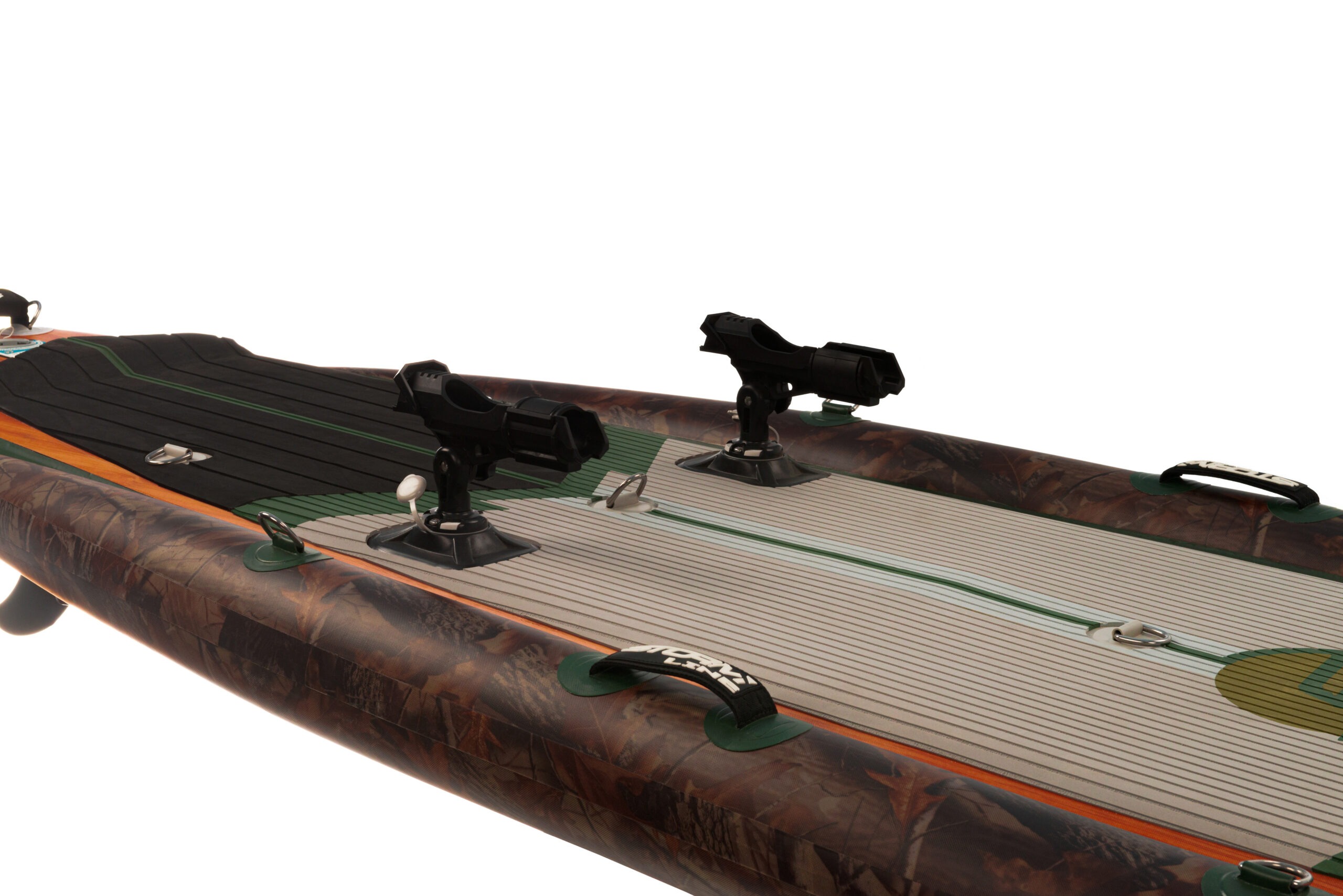 We hebben een doorbraak gemaakt in de wereld van het vissen en een SUP board ontworpen dat perfect is voor deze activiteit. Door zijn zeer speciale vorm geeft dit board de visser toegang tot plaatsen die volledig onbereikbaar zijn vanaf de kust of moeilijk bereikbaar via watertransport zoals boten. Een ander kenmerk is een sterke constructie die stijf en stabiel is, maar toch behoorlijk wendbaar.
