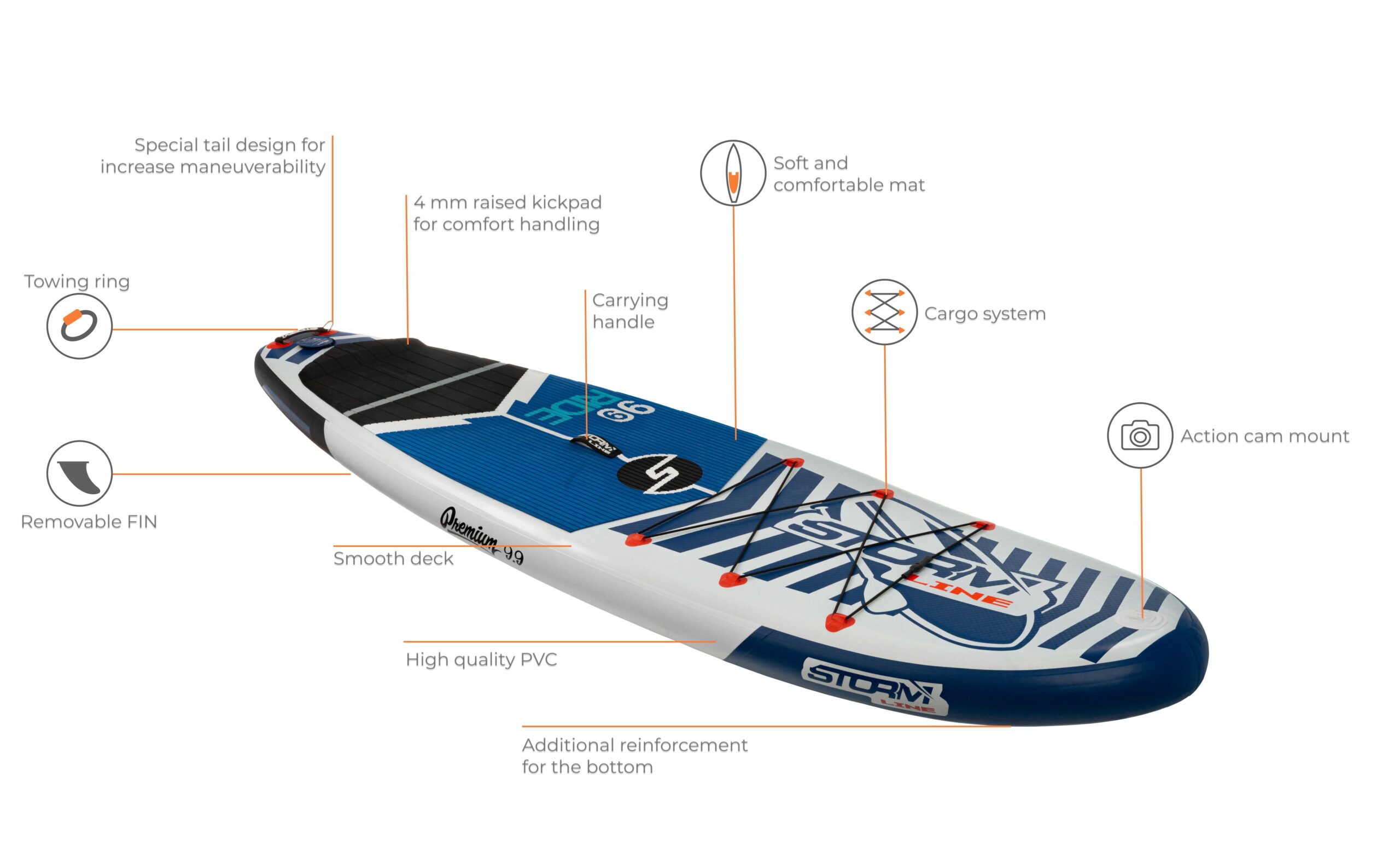 Dit standup paddleboard is de ideale oplossing voor twee verschillende, maar populaire en plezierige SUP-boardingmethoden: suppen voor beginners en gemakkelijk mee te nemen op reis. De Premium 9.9 is de beste optie voor diegenen die een praktisch board willen dat in veel omstandigheden kan worden gebruikt, met maximale stabiliteit en lichte constructie. Het is een geweldige mix van veelzijdigheid, gebruiksvriendelijk ontwerp en een slipvrij oppervlak. Kies voor deze SUP als je een praktisch board wilt dat alle onmisbare features in één combineert.