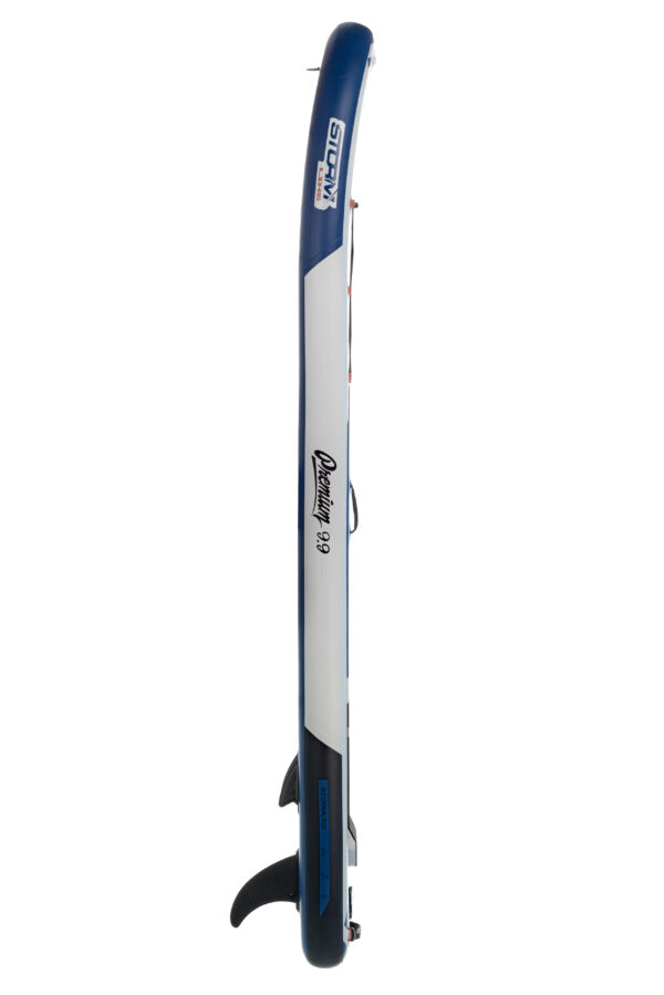 Voor de Premium line-boards wordt er hoogwaardig Drop Stitch-materiaal gebruikt waarmee het board 20 PSI aan druk kan vasthouden. Extra verstevigingslaag op de neus en randen maakt de planken sterk en licht. Mooie laminering met UV-beschermende coating versterkt de slijtvastheid en geeft je stijl op het water.